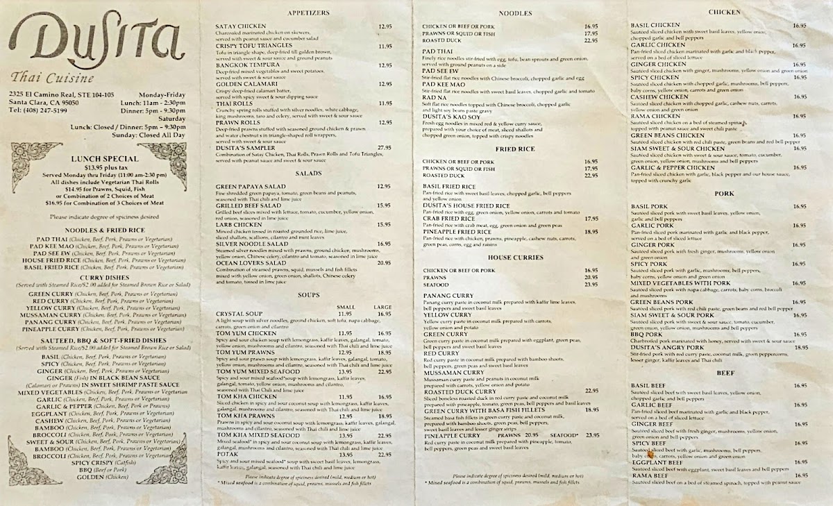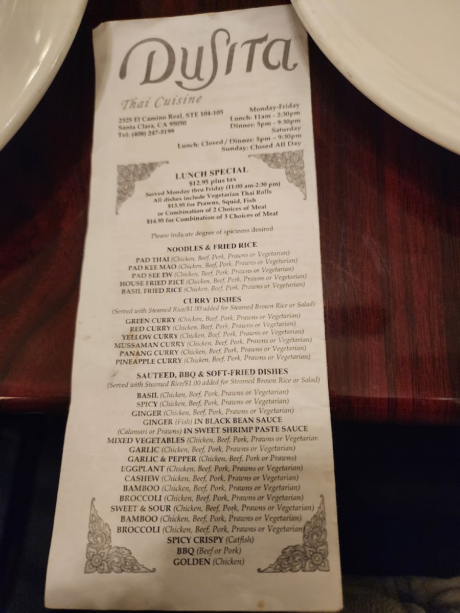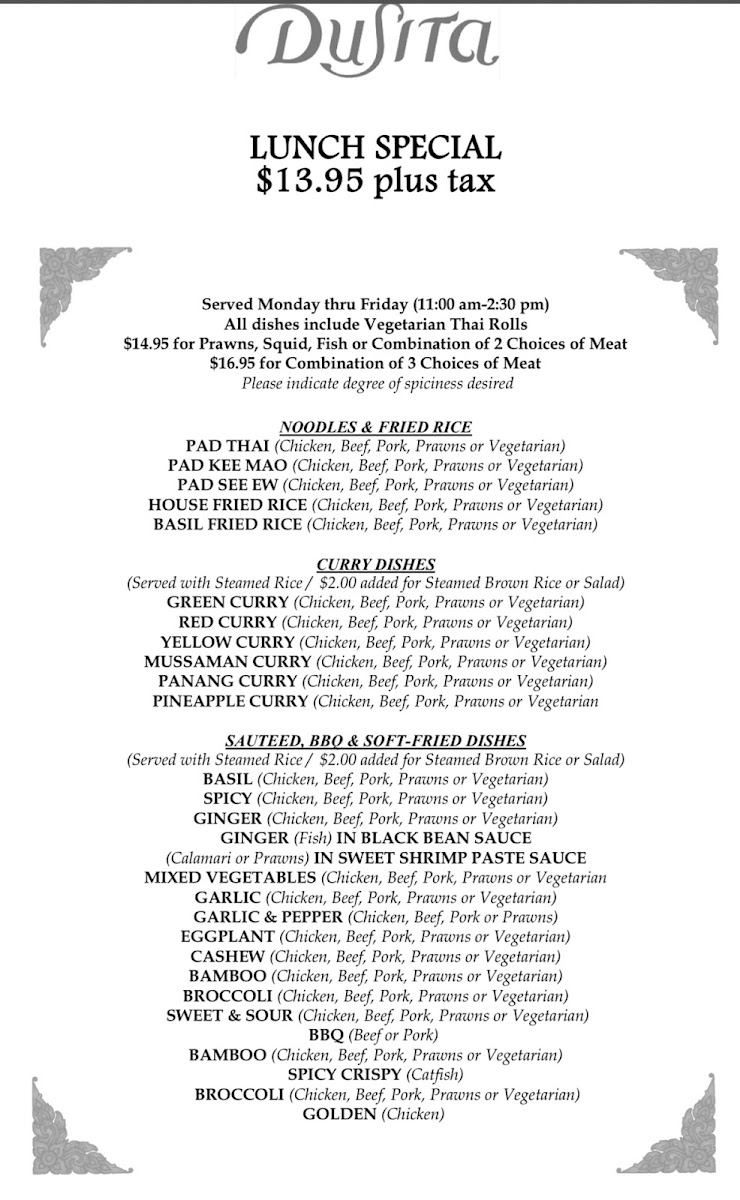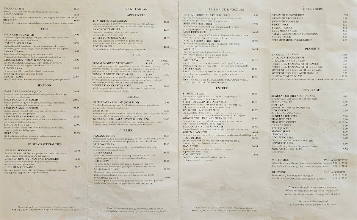 Tenderly basa fillets in red curry paste and coconut milk prepared with bamboo shoots, bell peppers, green peas and sweet basil leaves.